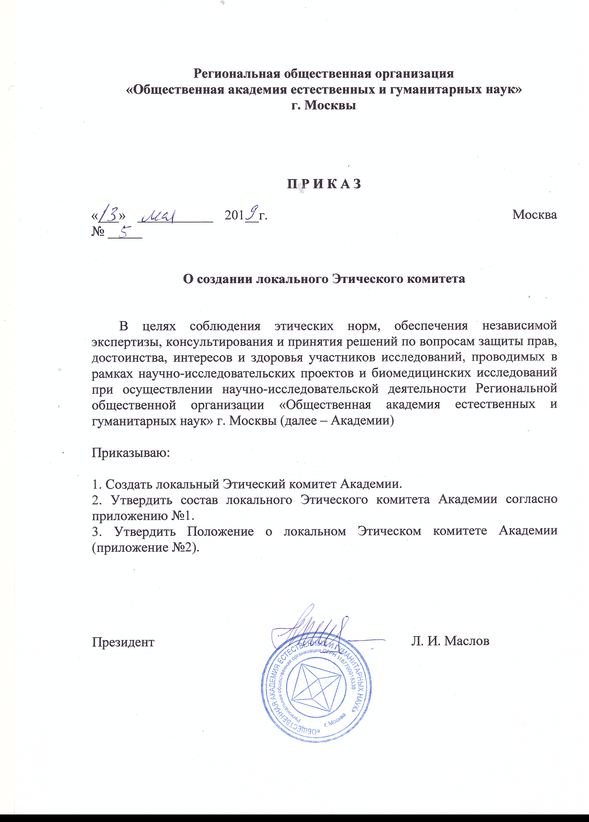 Приказ №5 2019 г. (создание локального Этического комитета)